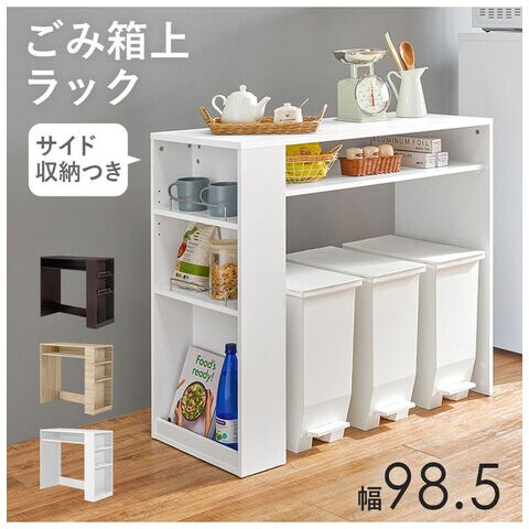 ゴミ箱上ラック 幅98.5cm 3分別タイプ ごみ箱上を有効活用 サイド収納付き 省スペース キッチンラック 作業台 作業スペース ごみ箱上ラック ゴミ箱上収納 ゴミ箱ラック ごみ箱ラック キッチン収納【送料無料】