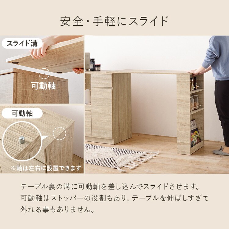 収納・作業スペースが広がる伸縮キッチンカウンター。