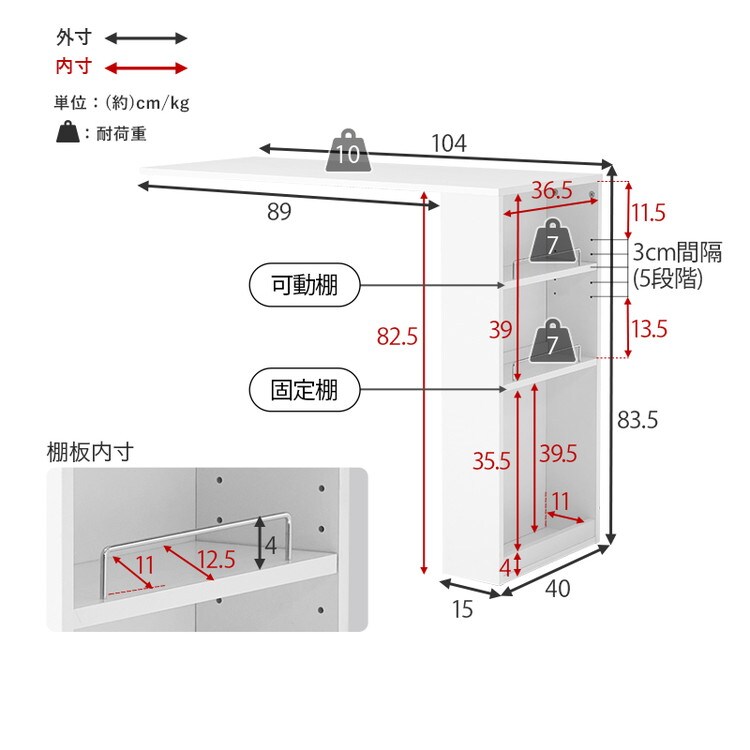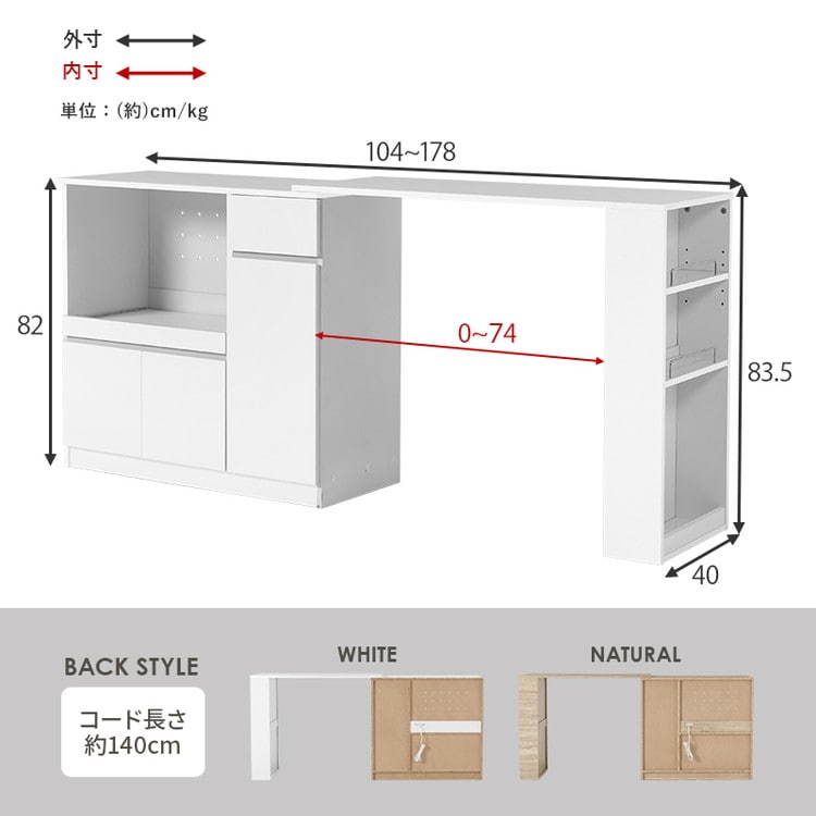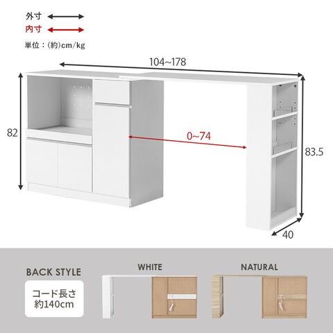 (約)幅104~178×奥行40×高さ83.5cm