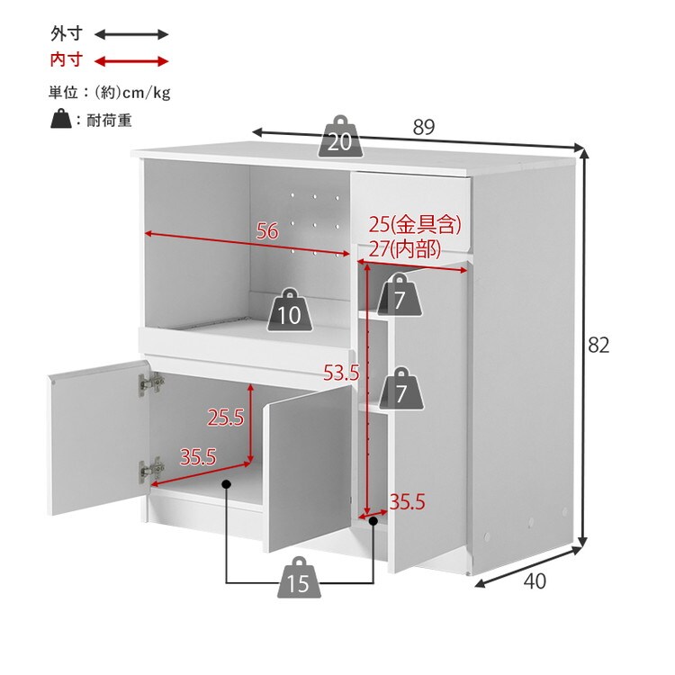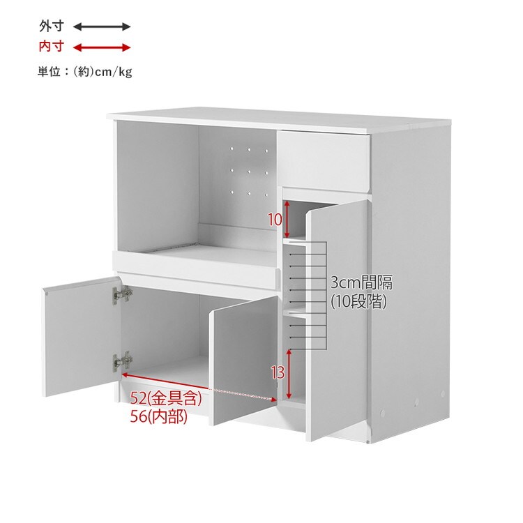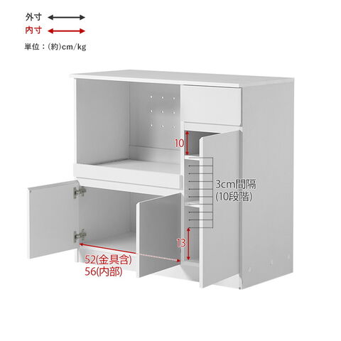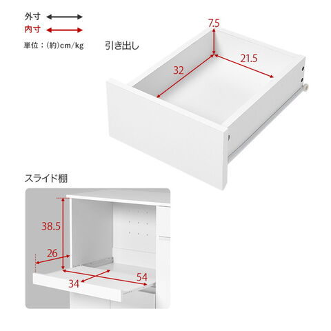 主材:プリント紙化粧パーティクルボード、天板・スライド棚:合成樹脂化粧パーティクルボード