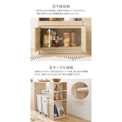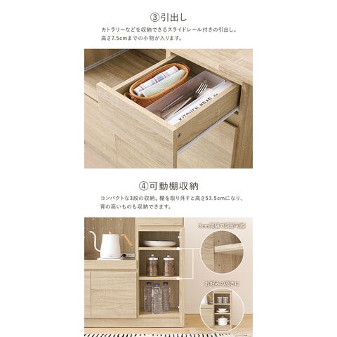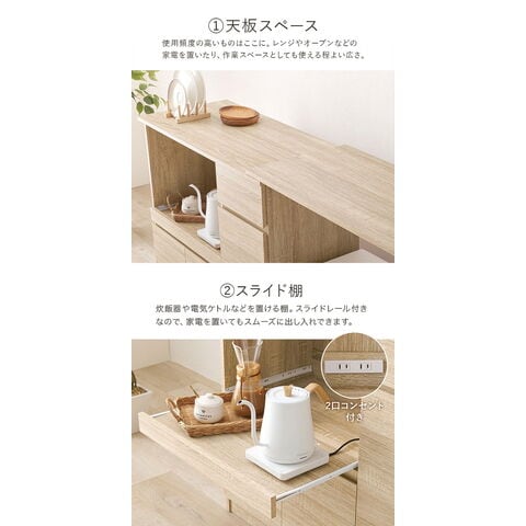2口コンセント付きでキッチン家電の収納に便利です。