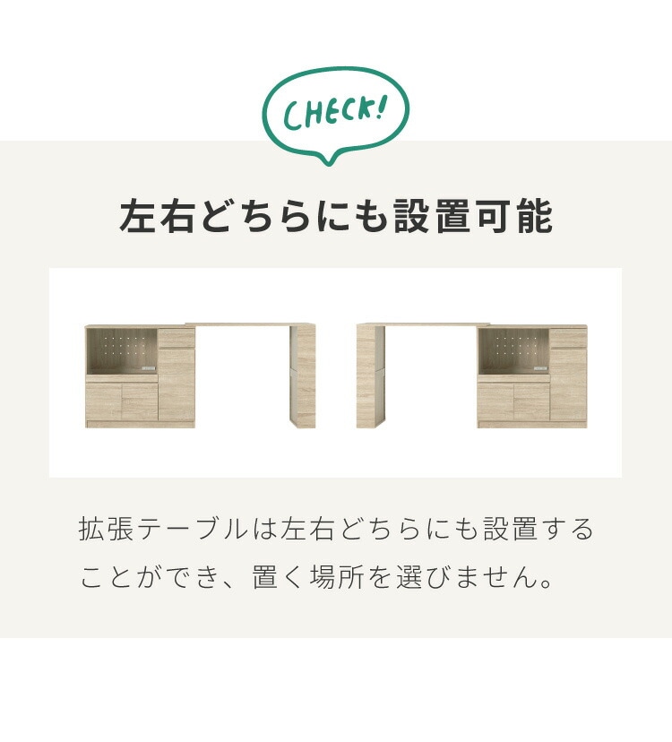 伸縮スライド棚は左右どちらにも取り付けることが可能です。