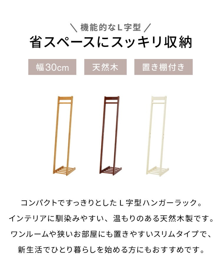 ハンガーラック 幅30cm 木製 天然木 スリム 省スペース おしゃれ L型 高さ150cm コンパクト コートハンガー 北欧 ナチュラル 衣類収納 洋服掛け コート掛け 玄関 花粉対策【送料無料】