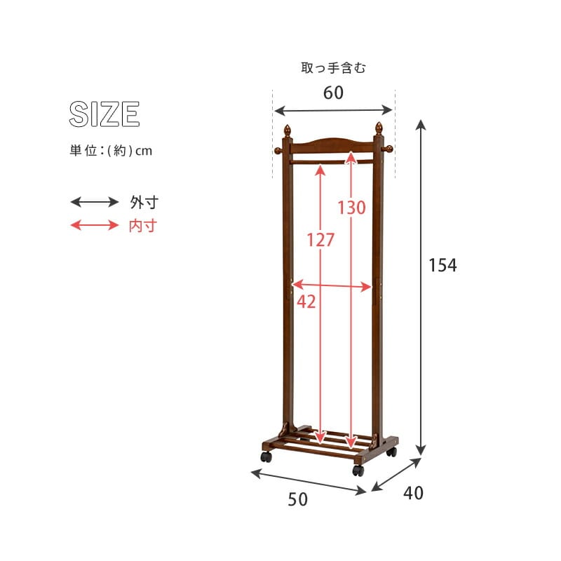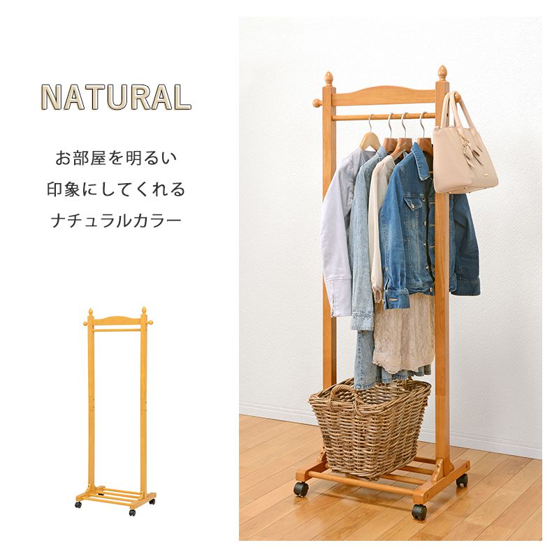 ハンガーラック キャスター付き 木製 ラバーウッド 幅60cm 奥行40cm 高さ154cm 棚付き コートハンガー VR-7237 萩原 移動【送料無料】