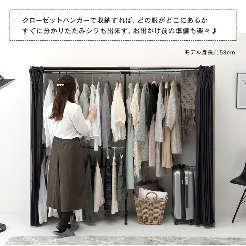 カーテン付きで目隠しできるから季節ものの服や雑貨、ゴルフバッグや衣装ケースなど服だけでなく普段使わないものをまとめて収納できます。