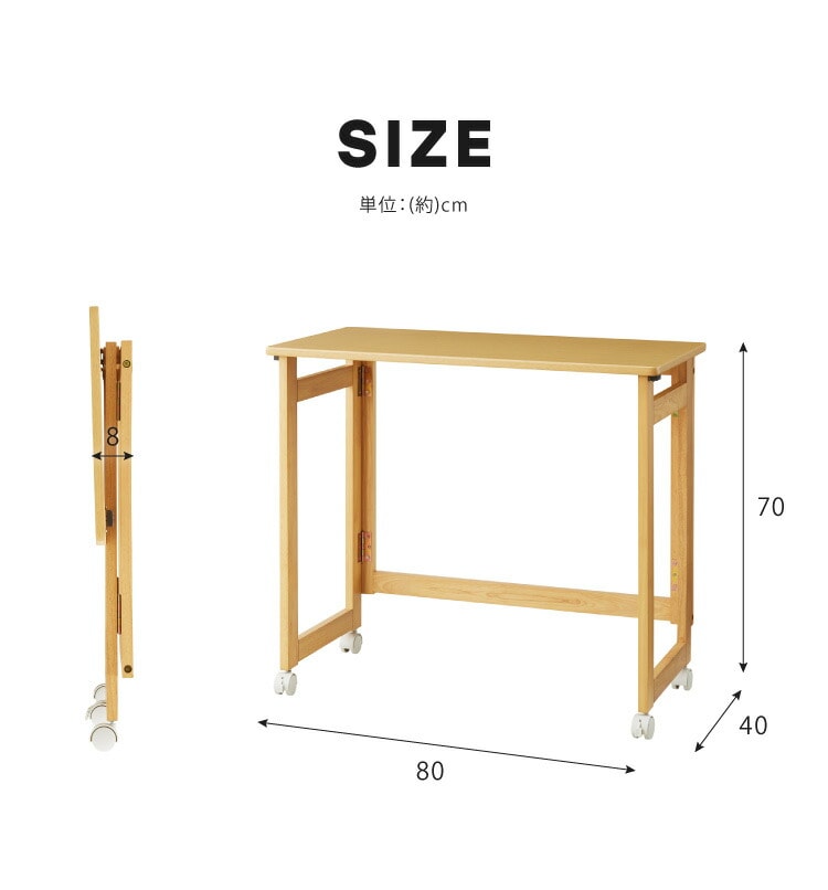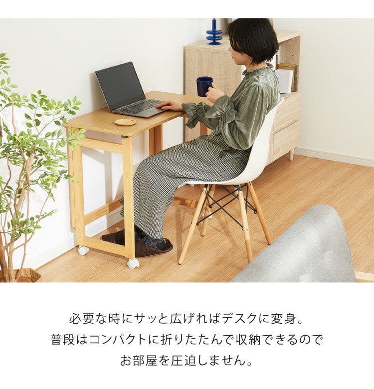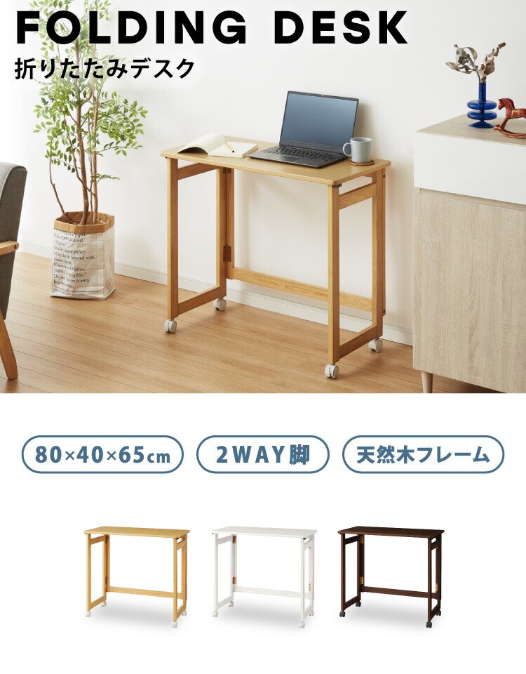 折りたたみ デスク テレワーク 木製 2WAY キャスター付き 80×40 高さ65 テーブル 机 在宅 リモートワーク 折りたたみデスク 折りたたみテーブル 折り畳み おしゃれ【送料無料】