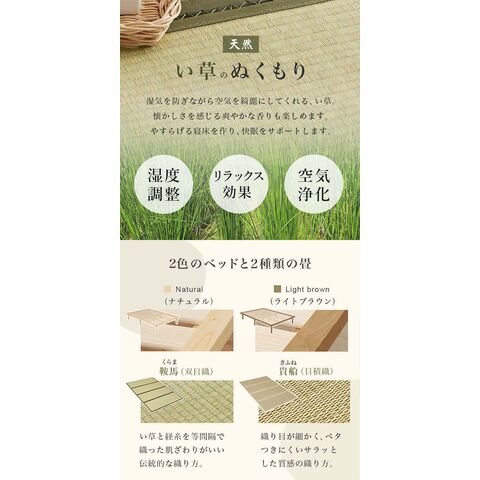 爽やかな天然い草を使用した畳マットをすのこベッドに合わせました。敷布団がそのまま使えるロングサイズです。