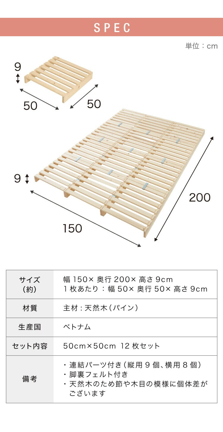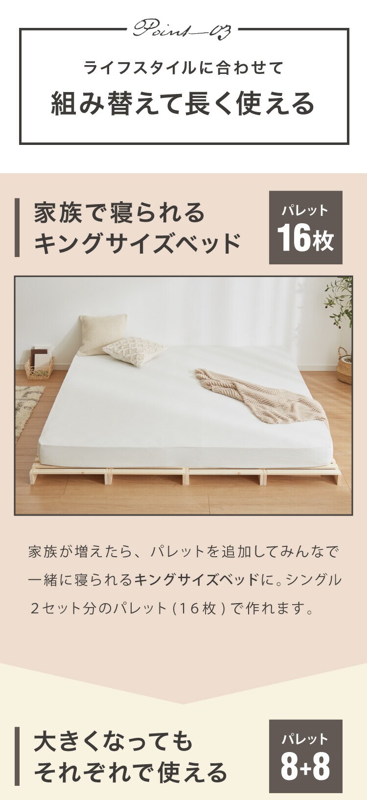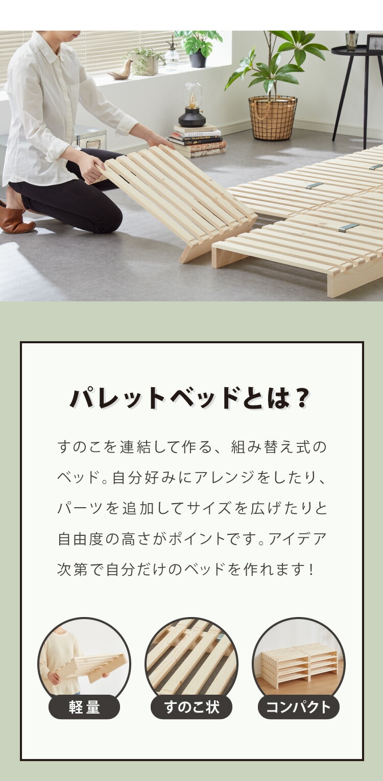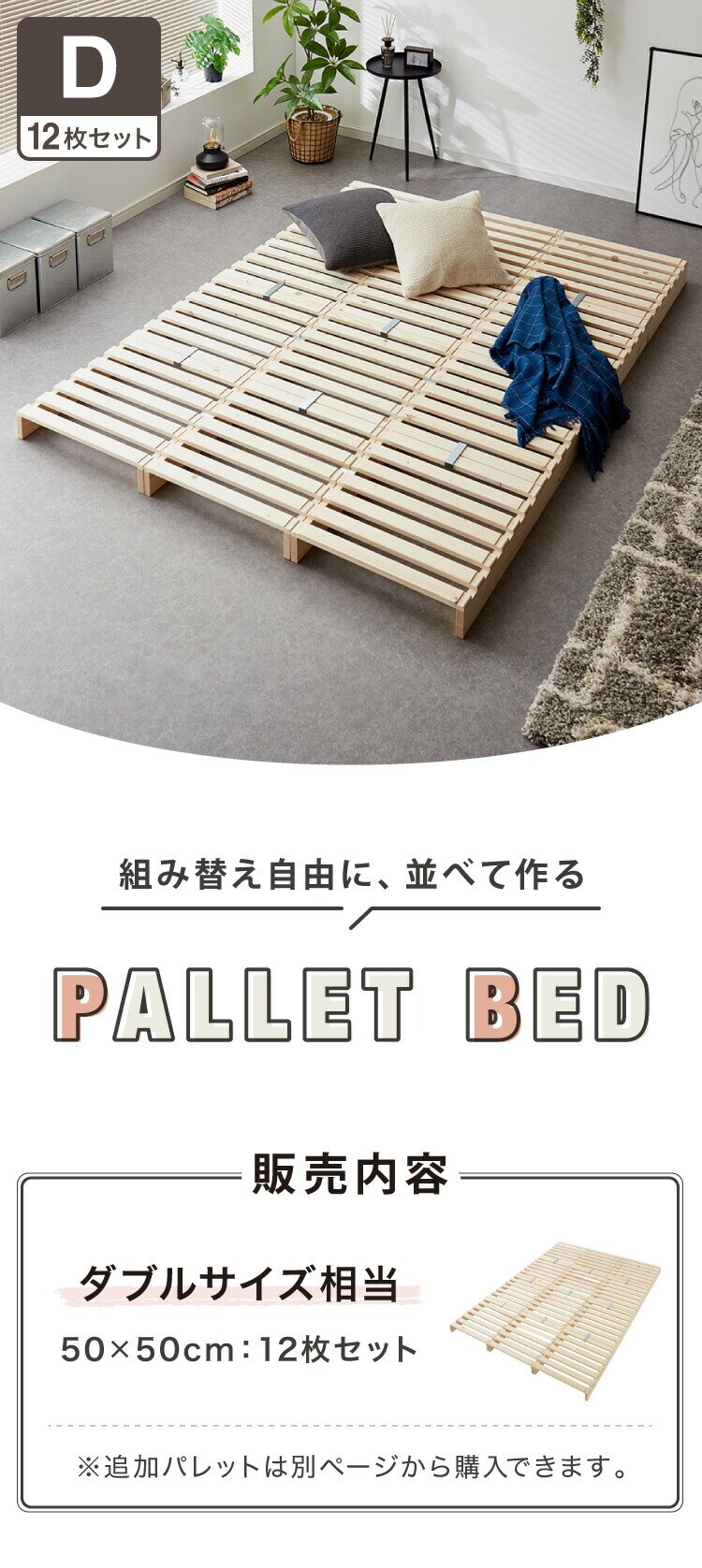 パレットベッド ダブル 天然木パイン 簡単 組み替え 12枚セット 分割式 すのこベッド 耐荷重350kg ローベッド ベッドフレーム フロアベッド ステージベッド 床面用 おしゃれ【送料無料】