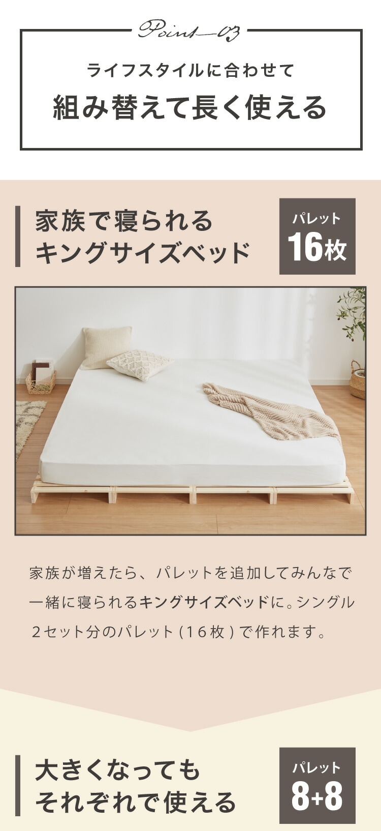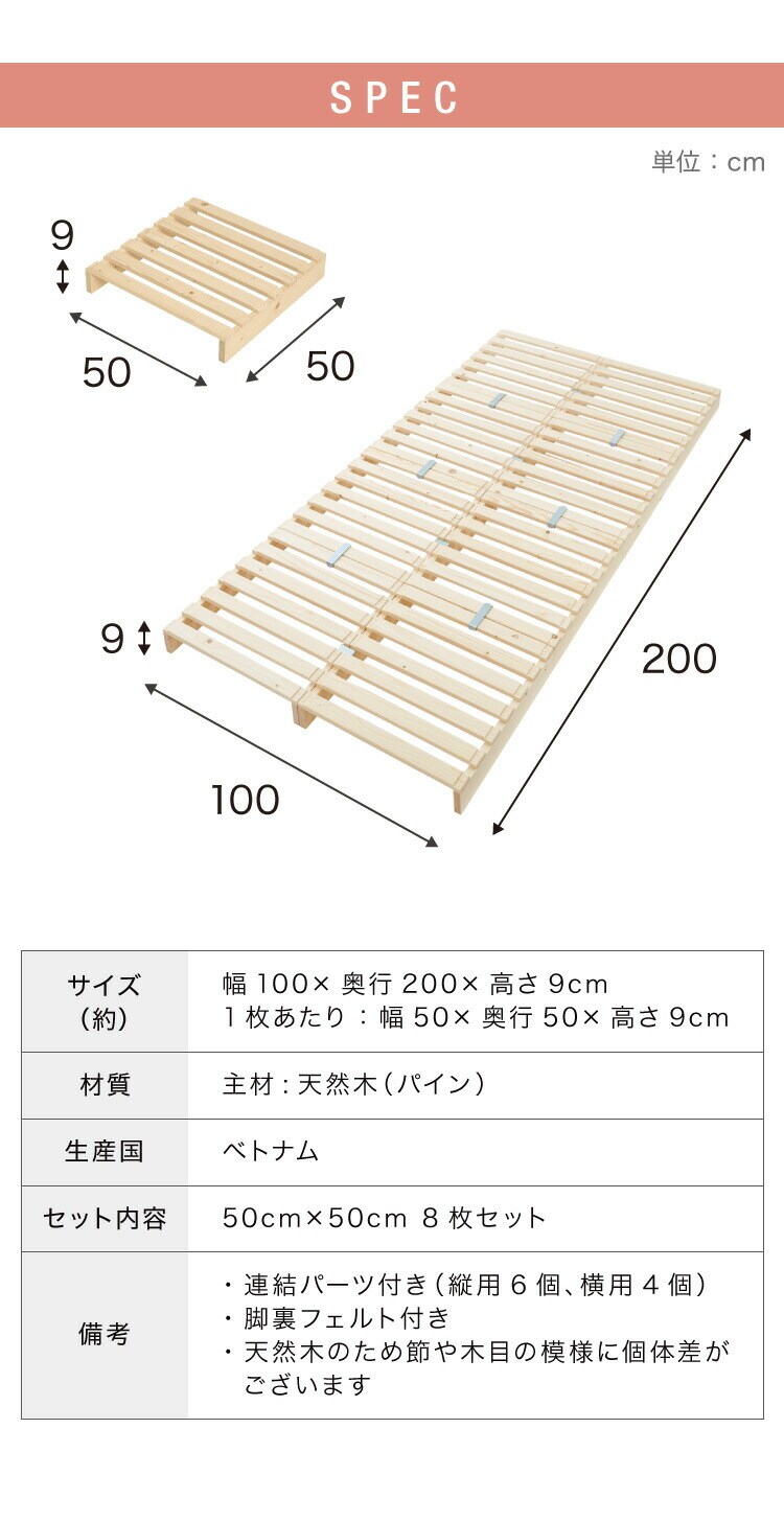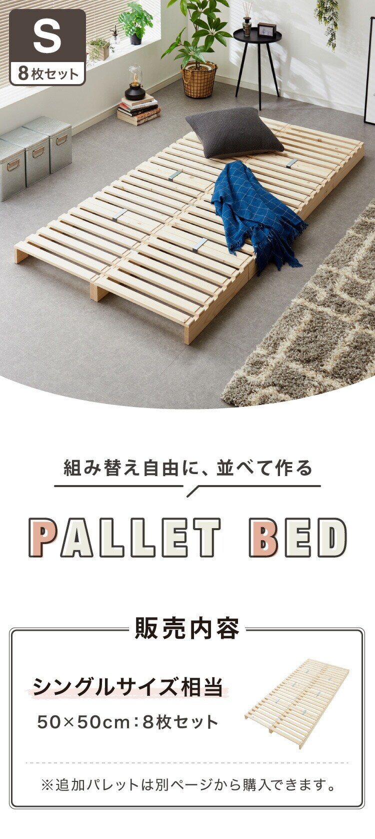 パレットベッド シングル 天然木パイン 簡単 組み替え 8枚セット 分割式 すのこベッド 耐荷重350kg ローベッド ベッドフレーム フロアベッド ステージベッド 床面用 おしゃれ【送料無料】
