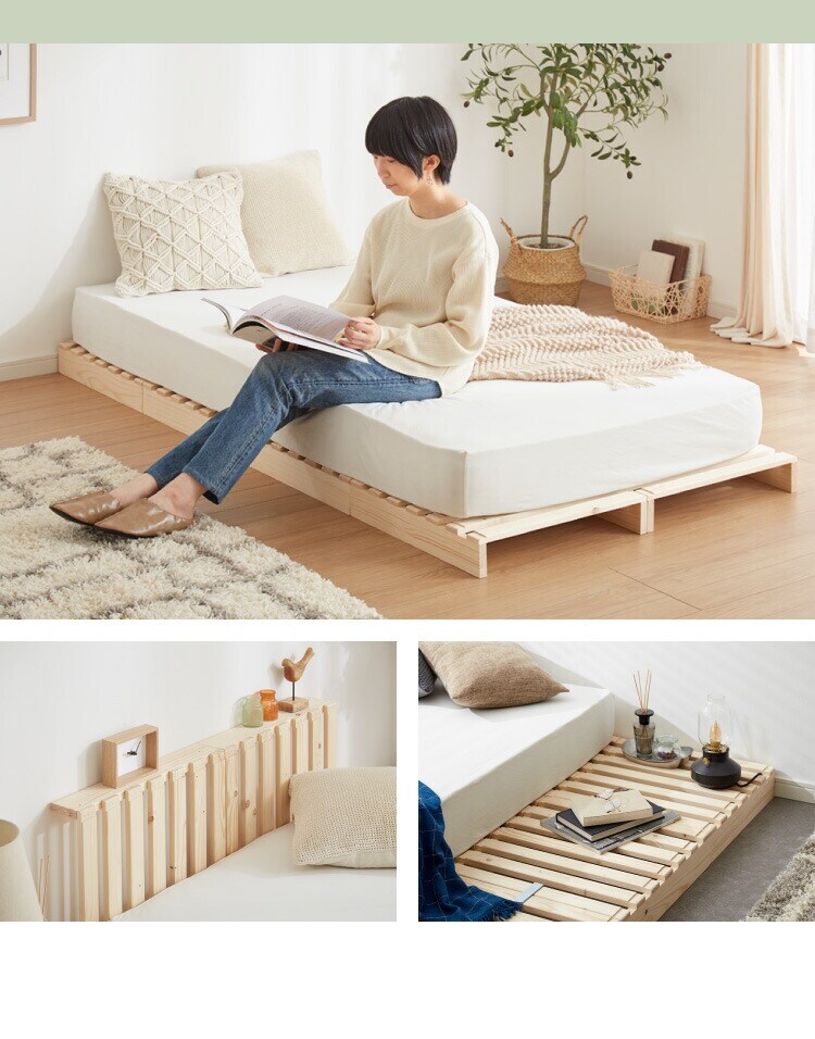 シングルサイズやダブルサイズ、宮棚やサイドテーブルなど様々なアレンジを楽しむことができます。