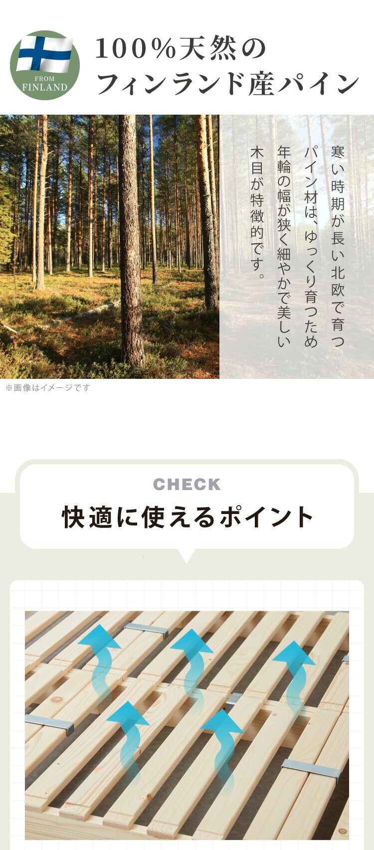 寒い時期が長い北欧で育つパイン材はゆっくり育つため年輪の幅が狭く、細やかで美しい木目が特徴的です。