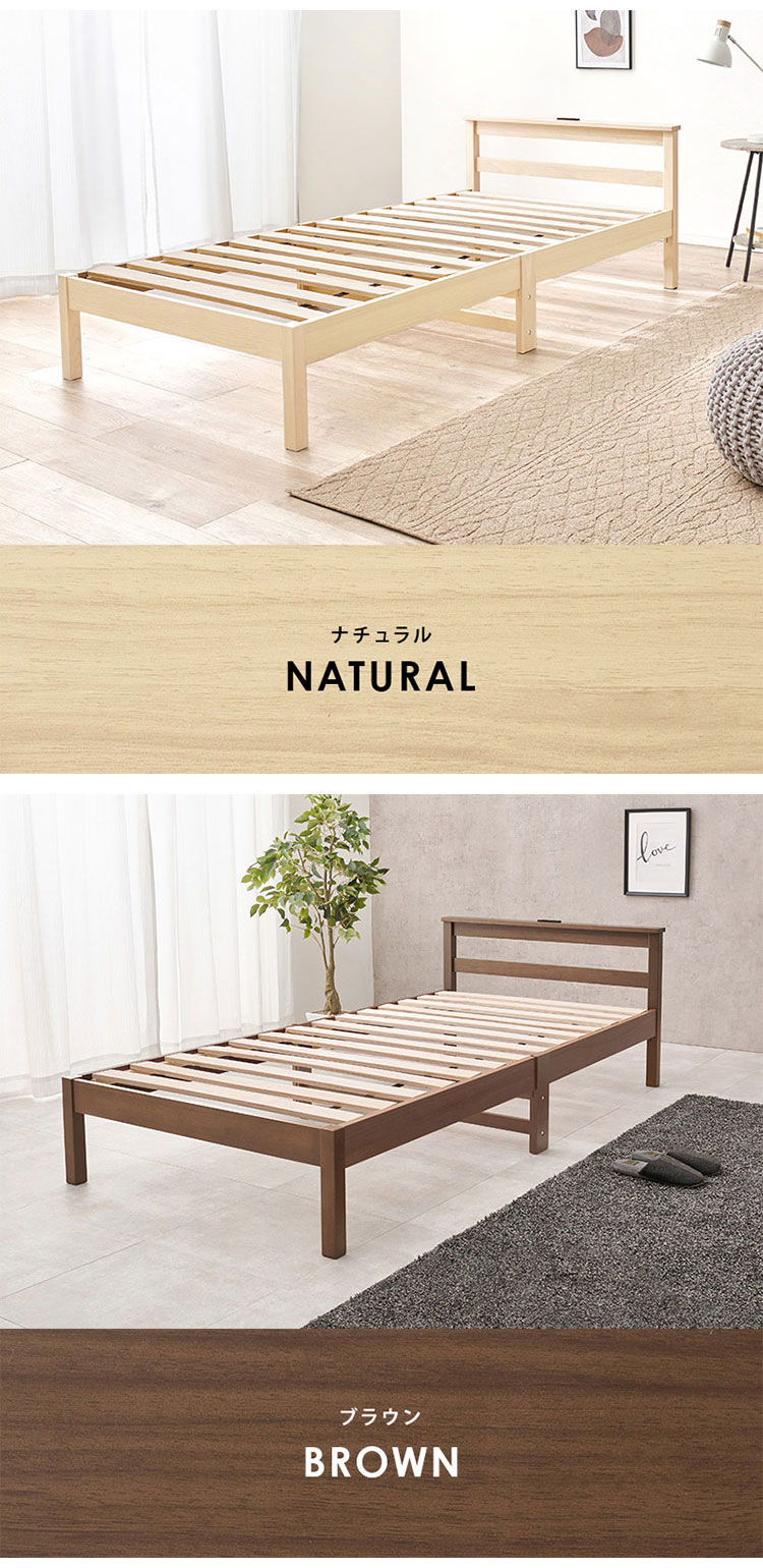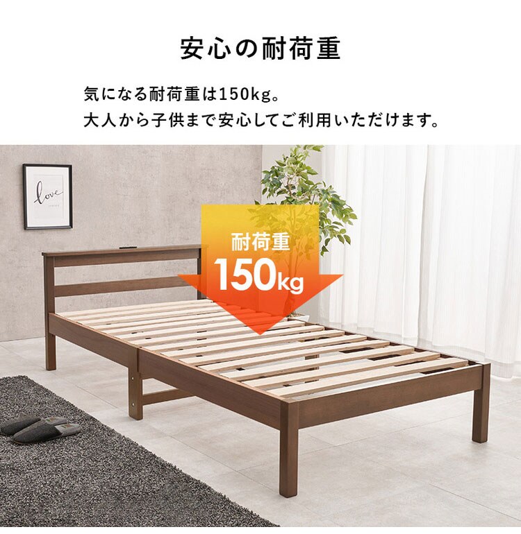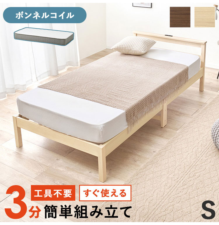 工具不要・簡単組立 すのこベッド シングル ボンネルコイルマットレス付き 耐荷重150kg 2口コンセント付き ベッドフレーム 木製 スノコ ベッド 寝具 寝具インテリア おしゃれ 北欧【送料無料】
