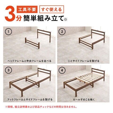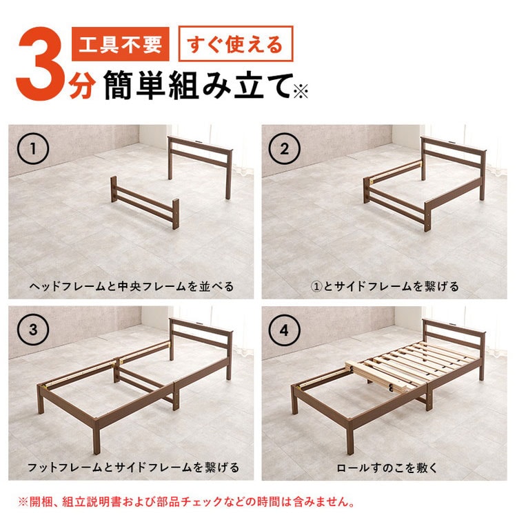 ネジなし、工具不要で簡単組立。お部屋に馴染むシンプルなデザインの宮棚とコンセント付きベッド。安定感のある寝心地のボンネルコイルマットレスセット