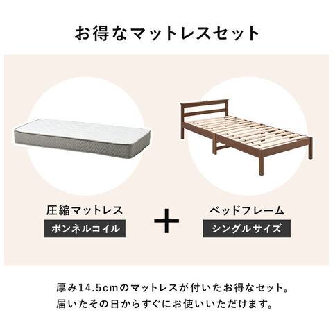 ベッド:ベッド:天然木(ラバーウッド)・プリント化粧パーティクルボード、マットレス:ボンネルコイルポリエステル