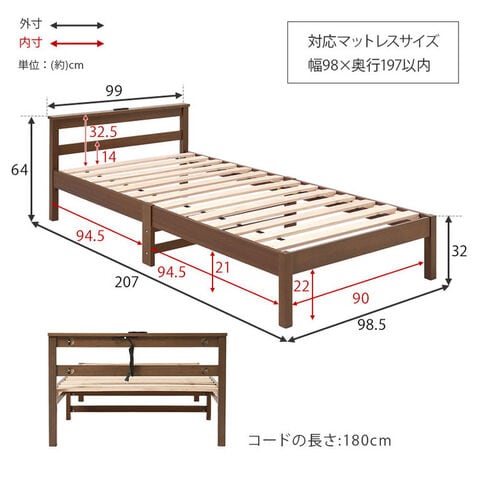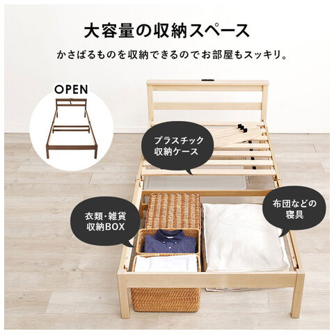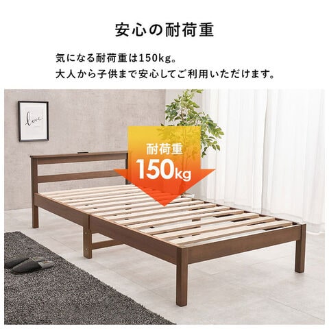 工具不要・簡単組立 すのこベッド シングル 耐荷重150kg 2口コンセント付き ベッドフレーム 木製 スノコ ベッド 寝具 寝具インテリア おしゃれ 北欧【送料無料】
