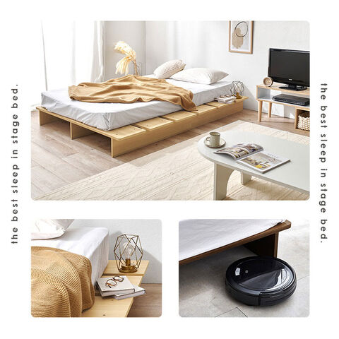お掃除ロボット対応 ステージベッド セミダブル ボンネルコイルマットレス付き 頑丈 耐荷重350kg 余白がおしゃれ ローベッド ベッド ロータイプ 木製 ロボット掃除機対応 おしゃれ【送料無料】