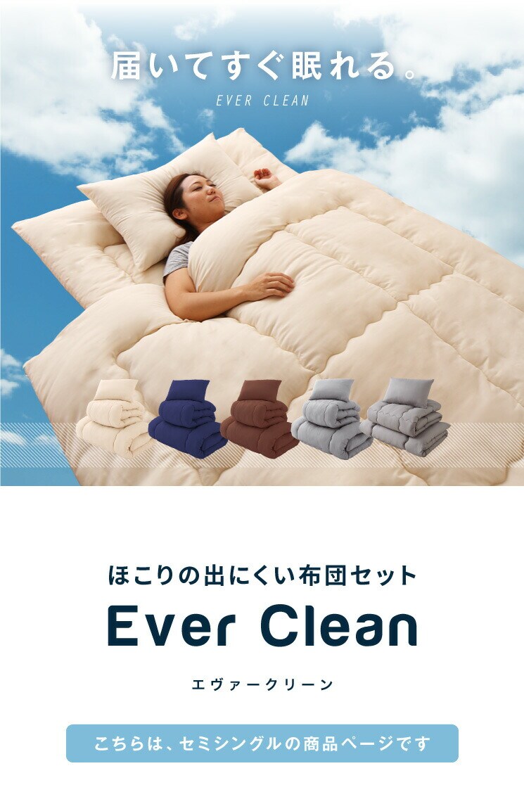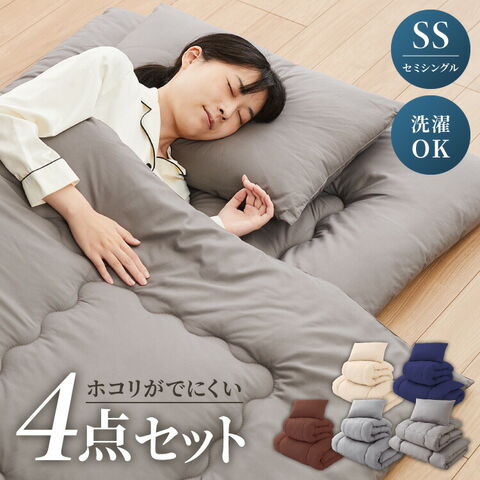 布団4点セット セミシングル【Ever Clean】エヴァークリーン ほこりが出にくい 中空ポリエステル綿 洗える ピーチスキン加工 軽量 おしゃれ ふとんセット 掛布団 掛け布団 敷布団 敷き布団 枕【送料無料】