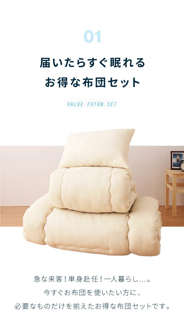 ・届いたその日に直ぐ眠れる ほこりの出にくい布団セット