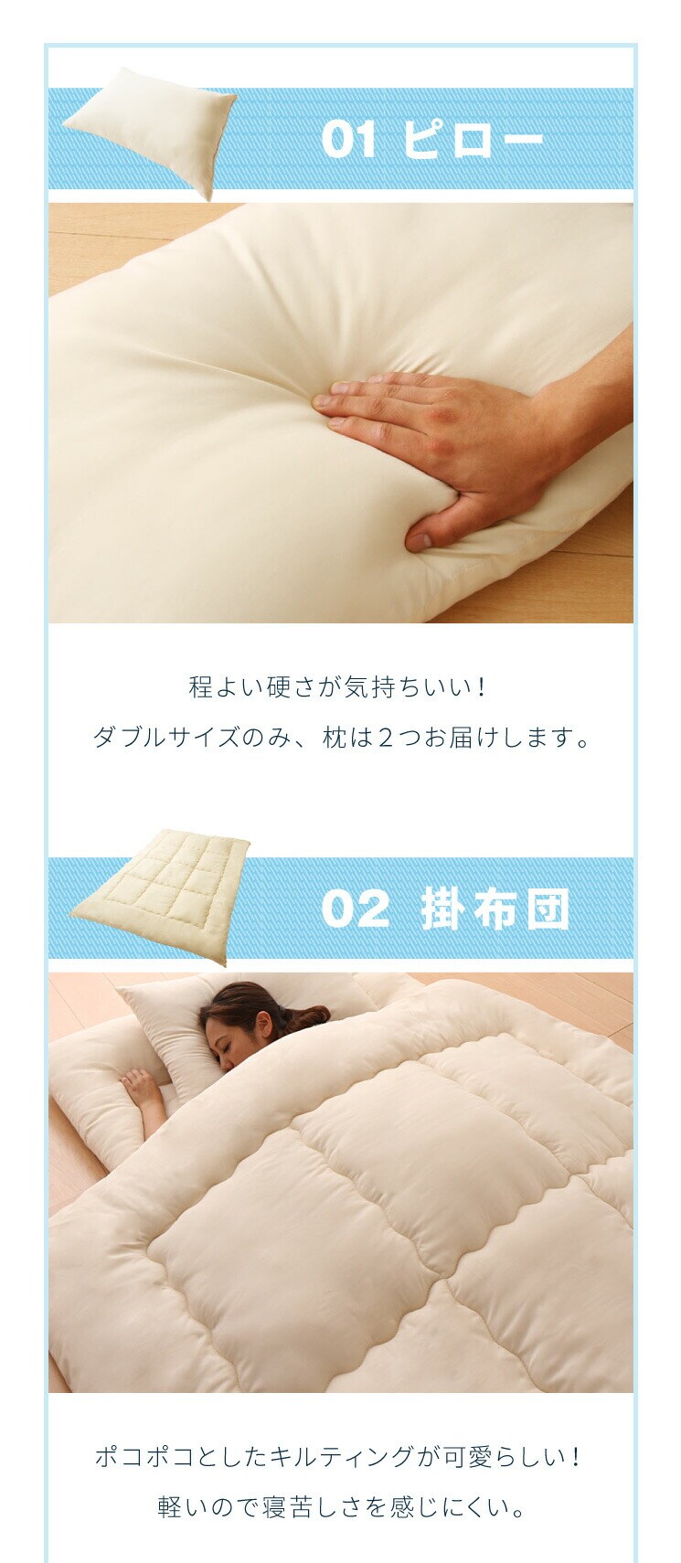※枕は圧縮された布団の中に同梱されております