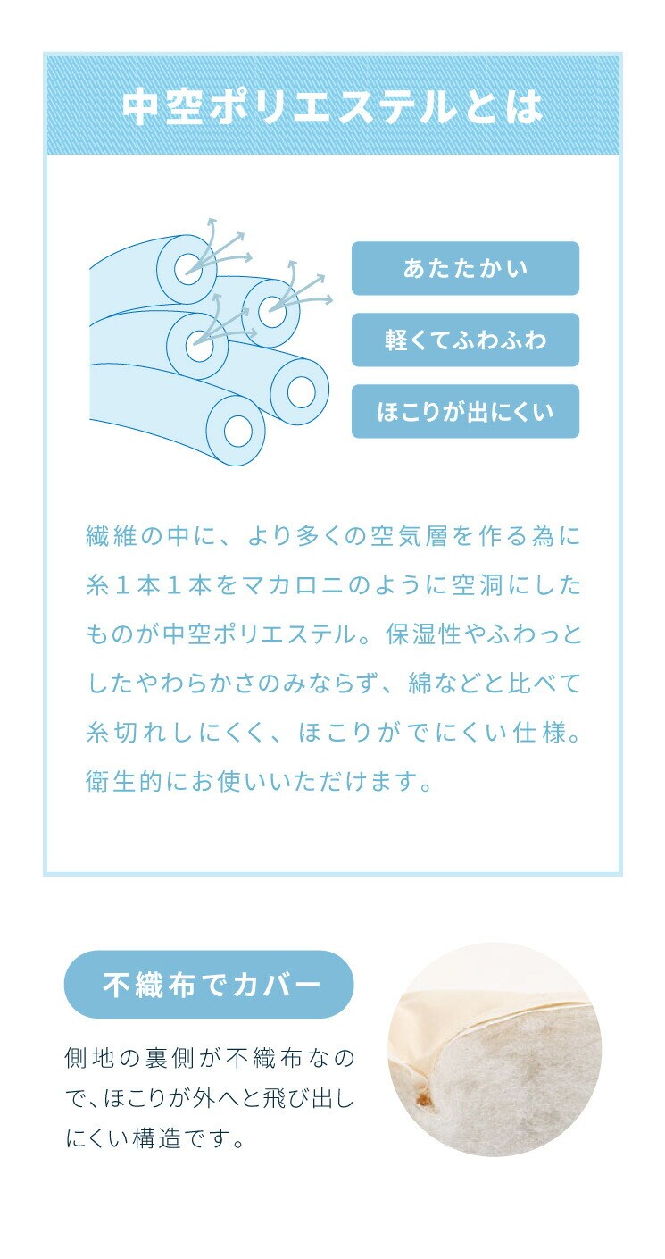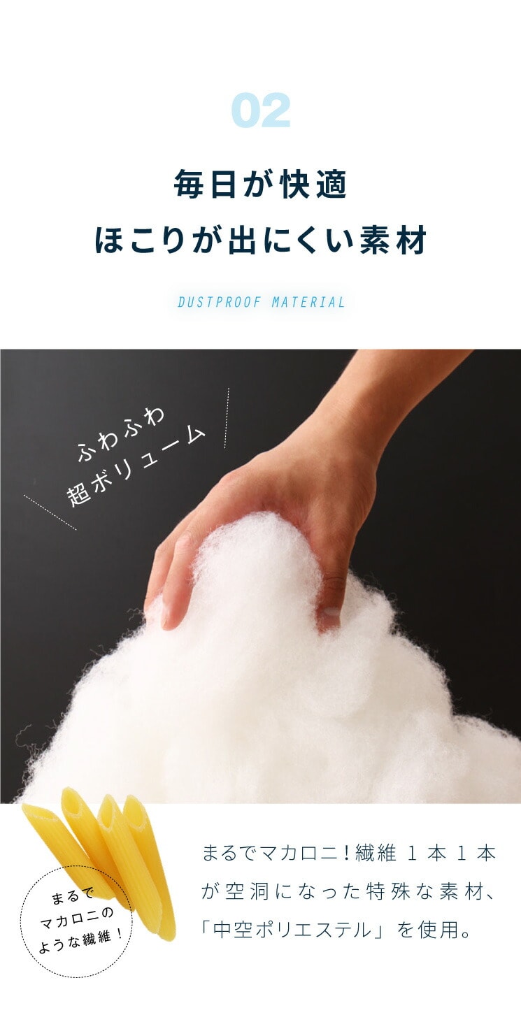 ・中空ポリエステル綿を中材に使用 ほこりが出にくいから毎日快適