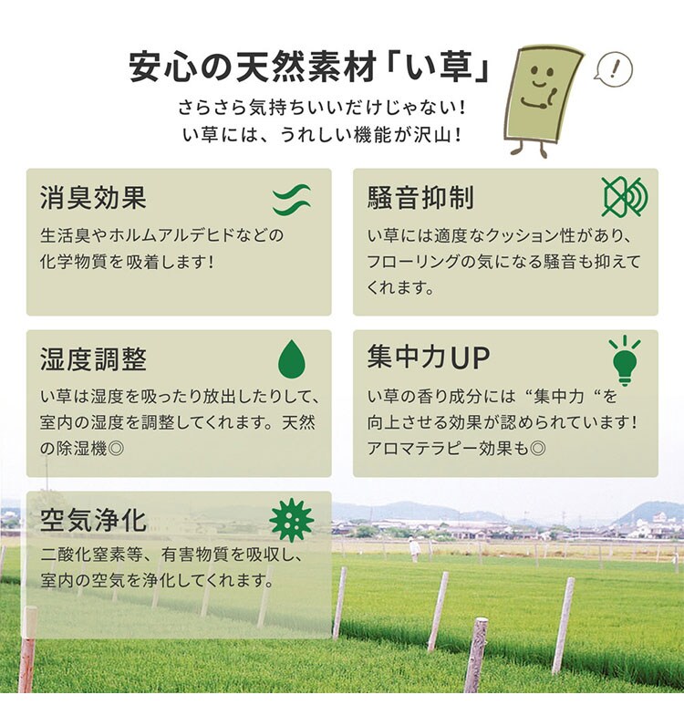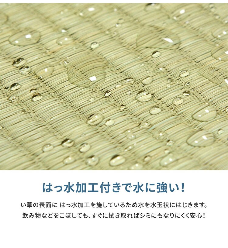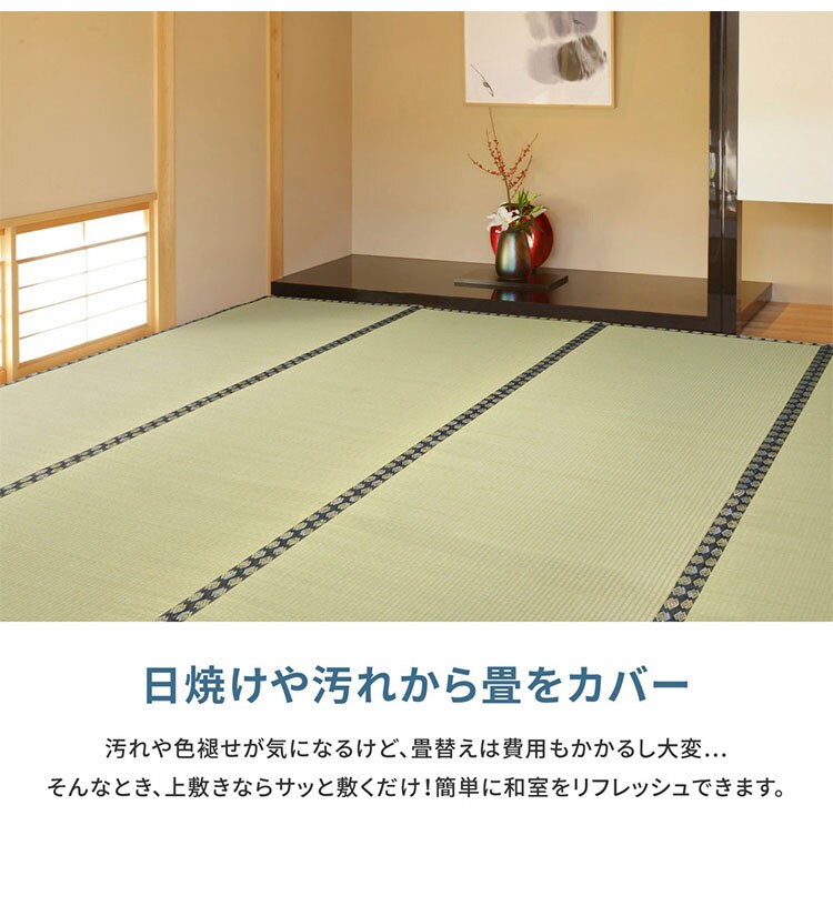 畳の素材である「い草」を気軽に味わうことができる敷き詰めタイプの上敷きです。