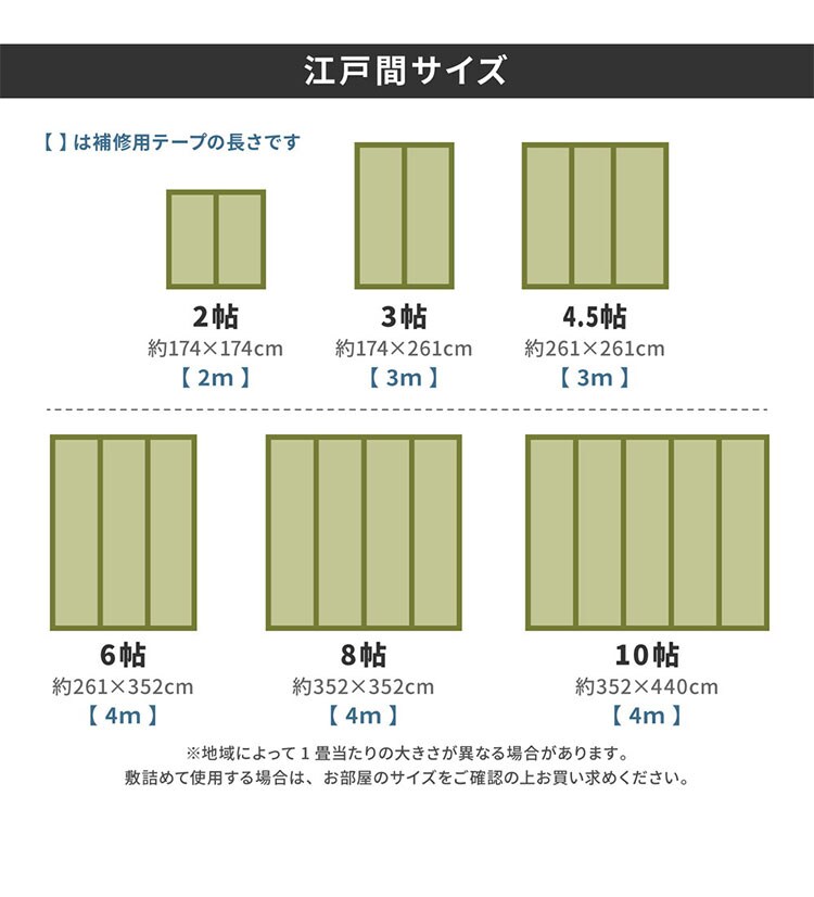 縁と同柄の補修用テープ付きで、カットしたところもきれいに隠せて自然な仕上がりに。