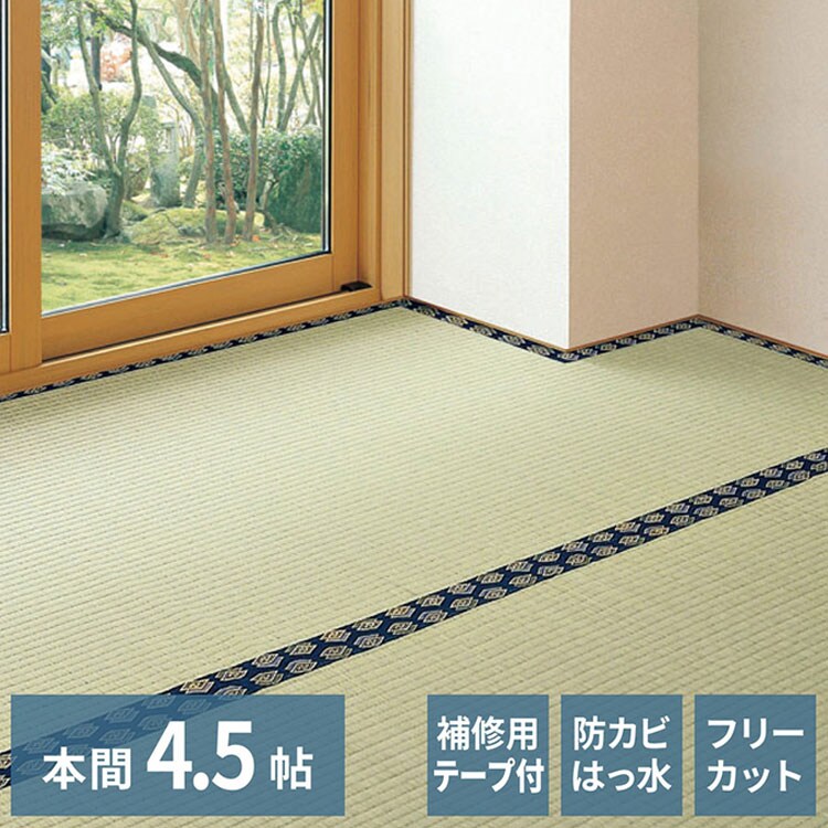 フリーカット裏付き い草カーペット 286×286cm みすず 本間4.5畳 補修テープ付き 防カビ はっ水 フリーカット カットOK 双目織 畳カバー マット 敷き詰め カーペット【送料無料】