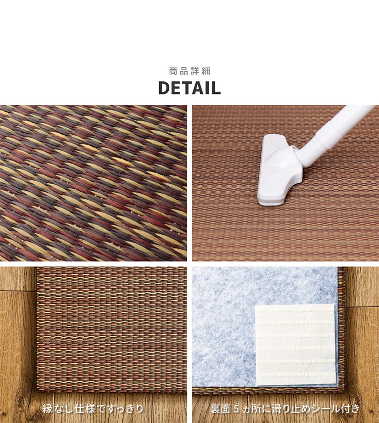 表面:い草100% 中材:ポリエチレン・ポリスチレン 裏面:不織布(滑りにくい加工付 裏面5カ所)
