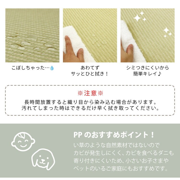 表がPP素材なので、ジュースなどをこぼしてもさっと拭き取れる子どもやペットのいるご家庭におすすめ。表がPP素材なので、ジュースなどをこぼしてもさっと拭き取れる子どもやペットのいるご家庭におすすめ。