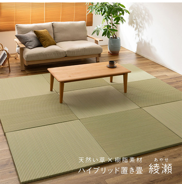 新素材で丈夫 ハイブリッド置き畳 綾瀬 9枚組 82×82cm い草×樹脂 置き畳 畳マット カーペット 天然い草 樹脂素材 MIX 和モダン おしゃれ 抗菌 防臭 騒音抑制 軽量 ユニット畳 ふちなし 縁なし【送料無料】