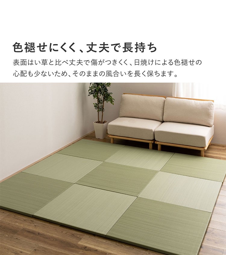水拭きできる い草風置き畳 おぼろ 同色12枚組 82×82cm 水拭きOK 置き畳 い草風 カジュアル置き畳 マット カーペット 置くだけ ユニット畳 フロア畳 ふちなし 縁なし【送料無料】