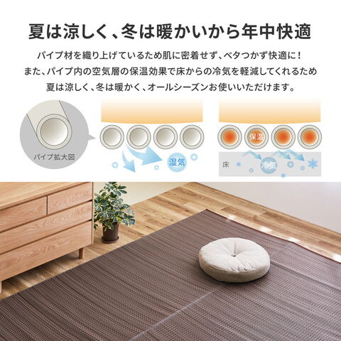 ポリプロピレンを使用した い草風のラグです。手軽に水洗いでき、お手入れが楽。ポリプロピレンを使用した い草風のラグです。手軽に水洗いでき、お手入れが楽。ペットとの快適な暮らしや、アウトドアにも最適です。モダンなリビングにも合う様なデザインに仕上げました。