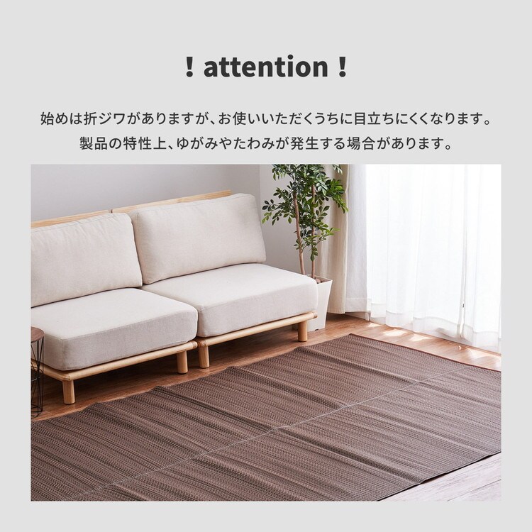 ポリプロピレンを使用した い草風のラグです。手軽に水洗いでき、お手入れが楽。ポリプロピレンを使用した い草風のラグです。手軽に水洗いでき、お手入れが楽。ペットとの快適な暮らしや、アウトドアにも最適です。モダンなリビングにも合う様なデザインに仕上げました。