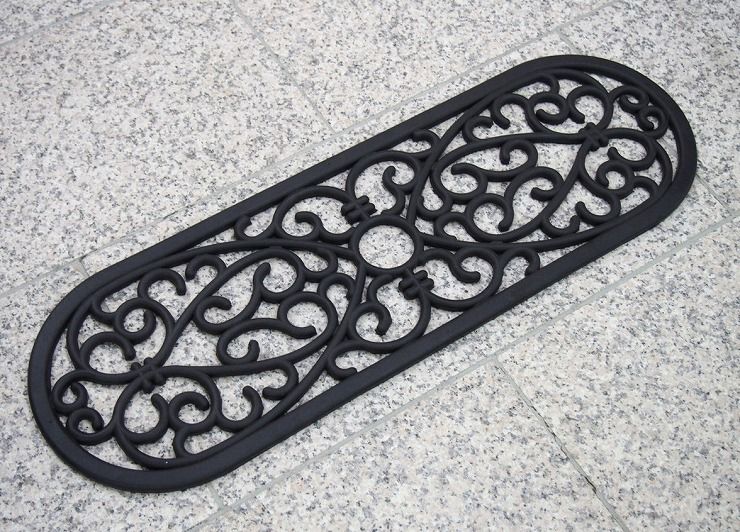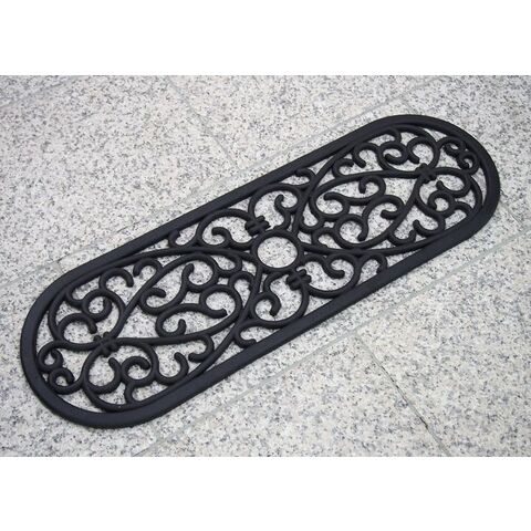 楕円形が素敵な屋外用玄関マット。玄関の階段や玄関先の段差に最適のマットです。玄関のスペースが狭い方にもおすすめです。店舗やオフィスの入り口にもおすすめです。てもやわらかいラバー素材なので、タイルなどをキズつけにくく安心してお使いいただけます。水洗いできるので汚れても安心です。 サイズ:約25×75cm カラー: 組成:ラバー 原産国:インド製
