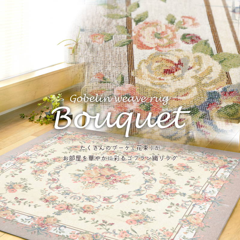 カーペット 絨毯 ラグマット ゴブランシェニールラグ ブーケ 230×330cm 洗える 撥水加工 はっ水 バラ柄 花柄 エレガント【送料無料】