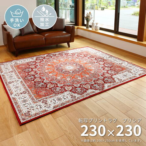 カーペット 絨毯 ラグマット 転写プリントラグ 230×230cm 洋風 エレガント 高級感 滑り止め 撥水加工 はっ水 薄手【送料無料】