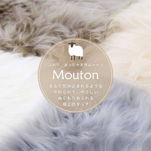 ニュージーランドの大自然で育った羊からとれるムートンは、自然からの贈り物。吸水性、放湿性に優れ、火にも強く、燃え広がりにくい、まさに呼吸する素材。表面は水を弾く性質もあり、自然の効力をもった人にやさしい万能素材です。包み込まれるようにやわらかで、優しいぬくもりがあふれるタッチ感は、他の追随を許さない特別な感触です。中材にはウレタンフォームを使用しているのでクッション性があります。