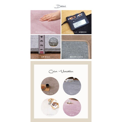ホットカーペット対応なので、普段はラグとして、冬はホットカーペットカバーとして、季節を問わずお使いいただけます。