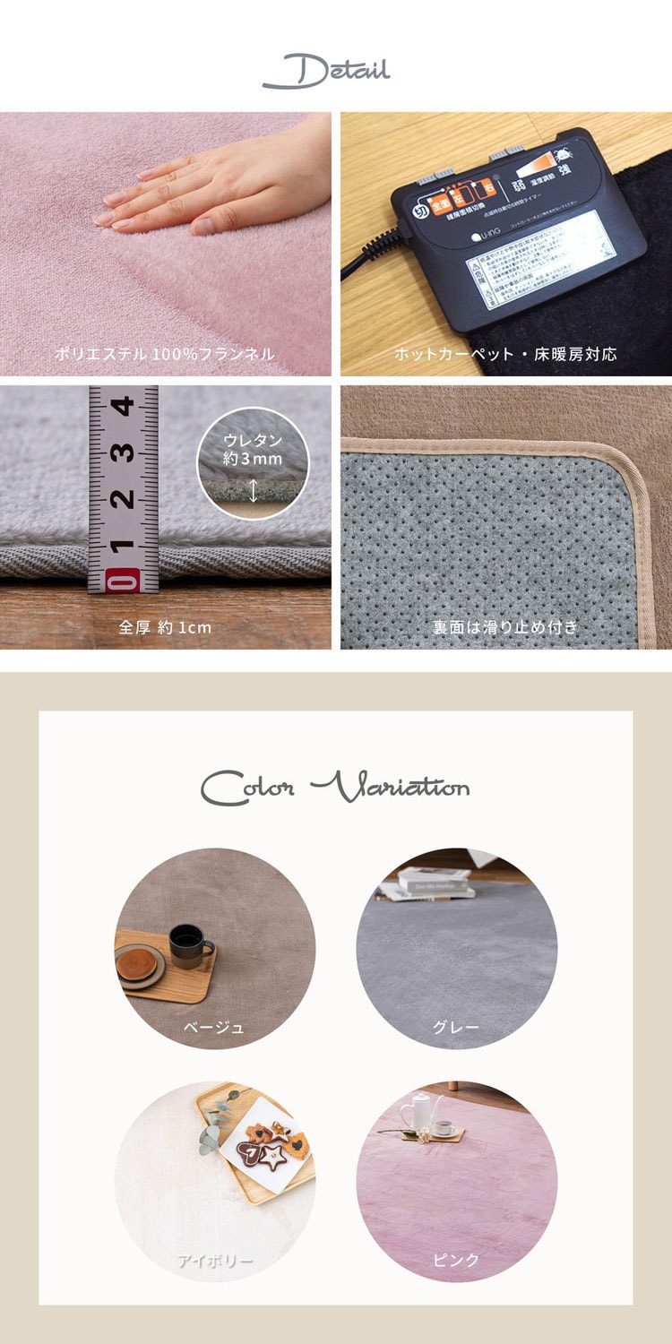 ホットカーペット対応なので、普段はラグとして、冬はホットカーペットカバーとして、季節を問わずお使いいただけます。