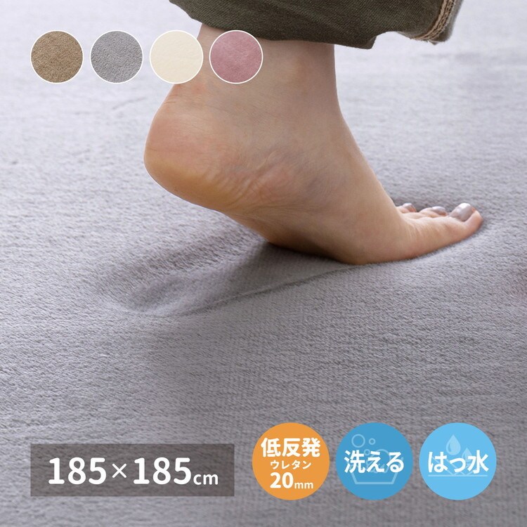 撥水加工ラグ メレンゲタッチ 低反発ラグ 185×185cm 正方形 2畳 ラグマット ラグ こたつ敷き おしゃれ ウレタン入り 滑り止め付き 手洗いOK ホットカーペットカバー 無地 ふっくら はっ水 厚手 秋冬【送料無料】