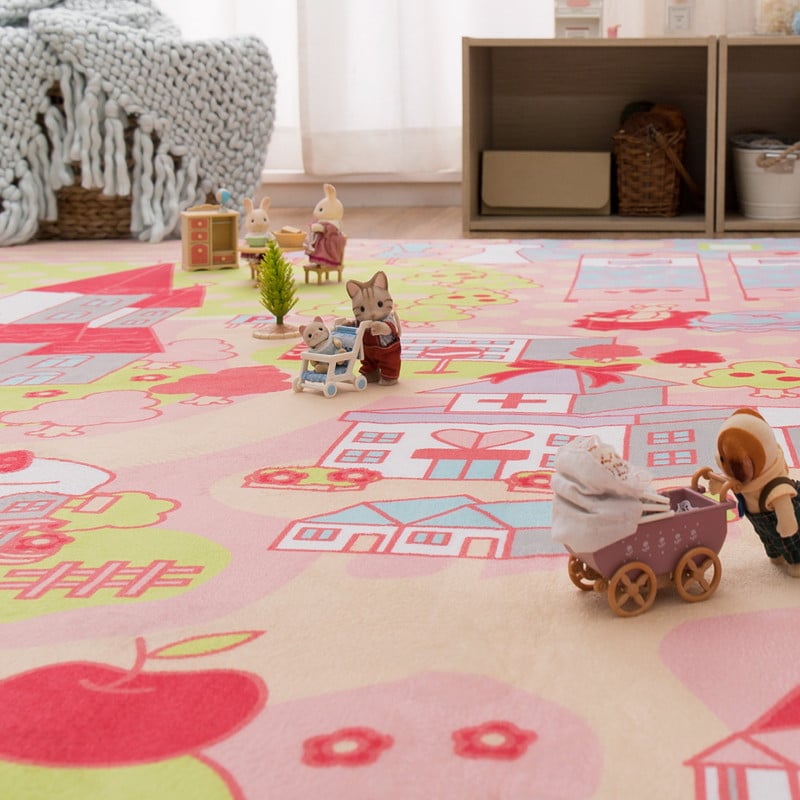 洗えるラグ プリンセスタウン2 お人形遊びに 190×190cm 約2.5畳 キッズラグ ピンク 姫系 かわいい プレイマット 女の子用ラグ 洗える 子供部屋 子供用 女の子 誕生日プレゼント【送料無料】