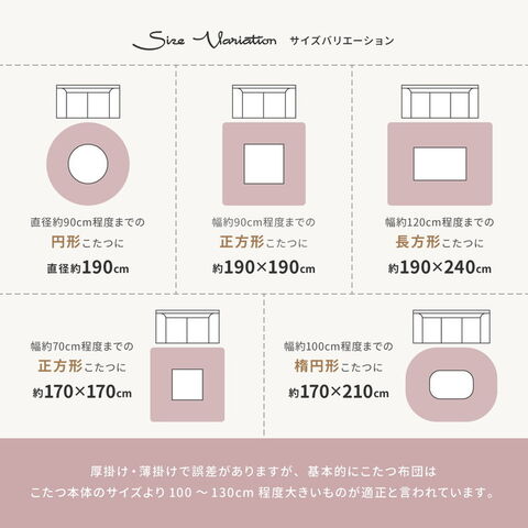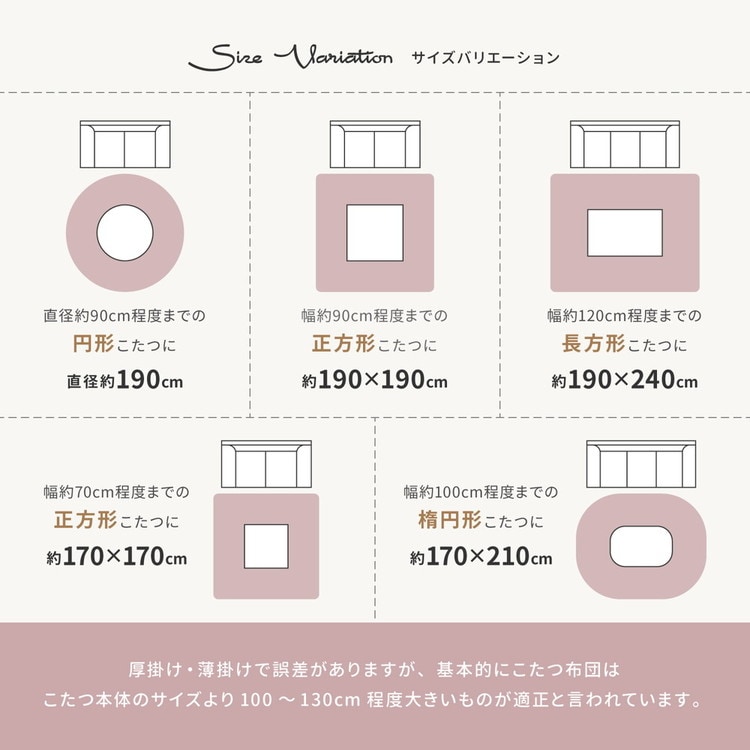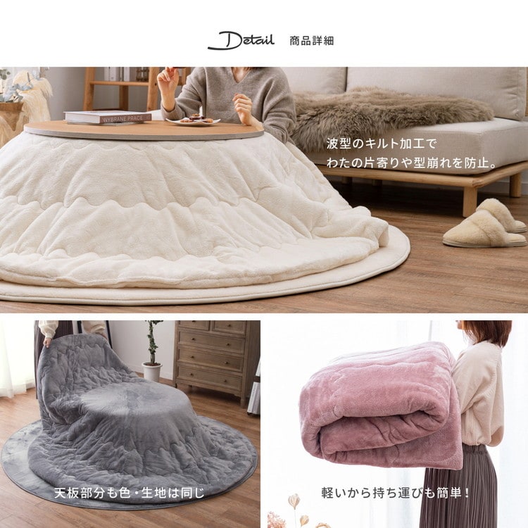 思わず触れたくなるようなふんわりなめらかタッチのこたつ掛け布団!収納もしやすい薄掛けタイプです。波型縫製で中わたが片寄るのを防ぎます。また、汚れても洗えるためいつも清潔にお使いいただけます。サイズはスクエアタイプとサークルタイプ、合わせて3サイズからお選びいただけます。