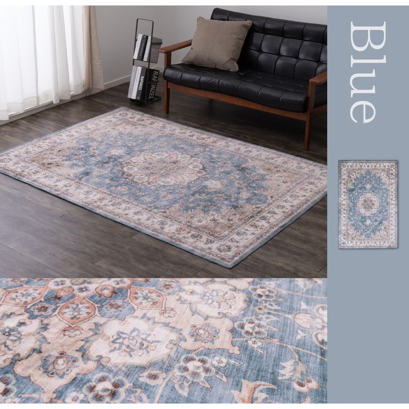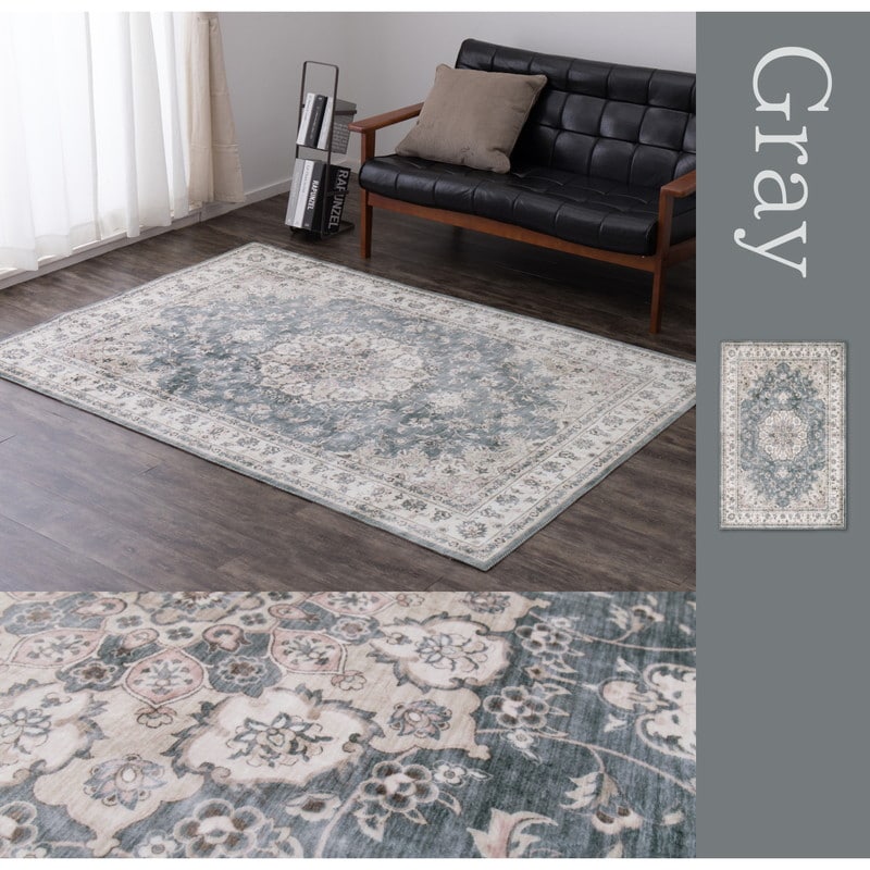 なめらかなフランネル生地に、小さな模様やかすれ感を細部までプリントで表現した、まるで高級ラグのような一枚。短毛でお手入れしやすく、洗濯機で洗えるのでいつも清潔にお使いいただけます。裏面はズレを軽減するすべり止め付き。ホットカーペット・床暖房に対応しており、オールシーズンで使えるラグです。