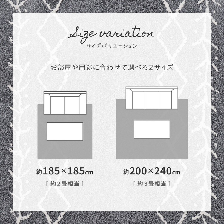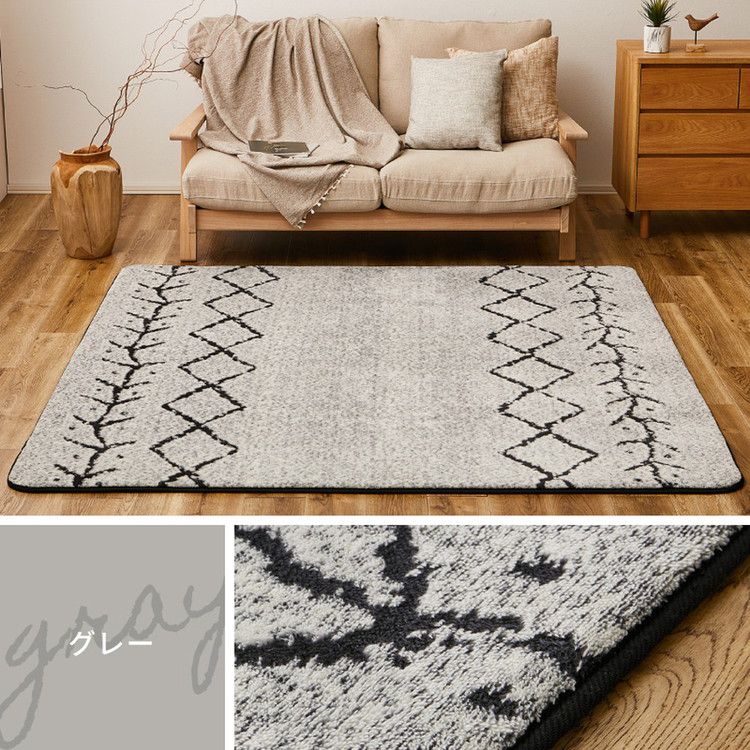 ベニワレン風 デザインラグ 185×185cm モロッカン 先染め仕様 ウレタン12mm ふっくら ラグ 床暖房対応 ラグマット カーペット 絨毯 モノトーン おしゃれ【送料無料】