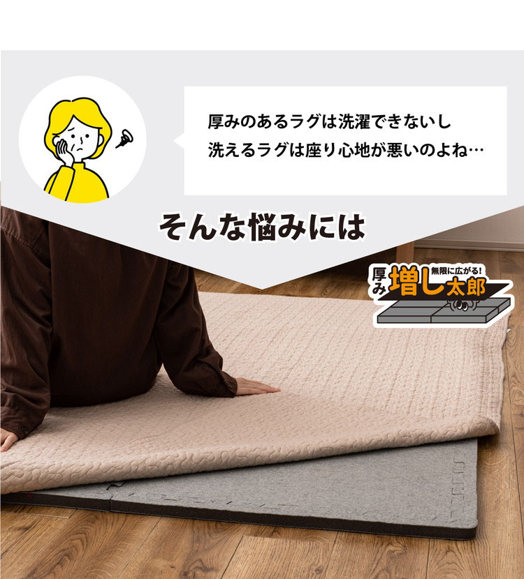 ■お使いのラグの下に敷くだけで洗えない問題&底付き問題を解決!