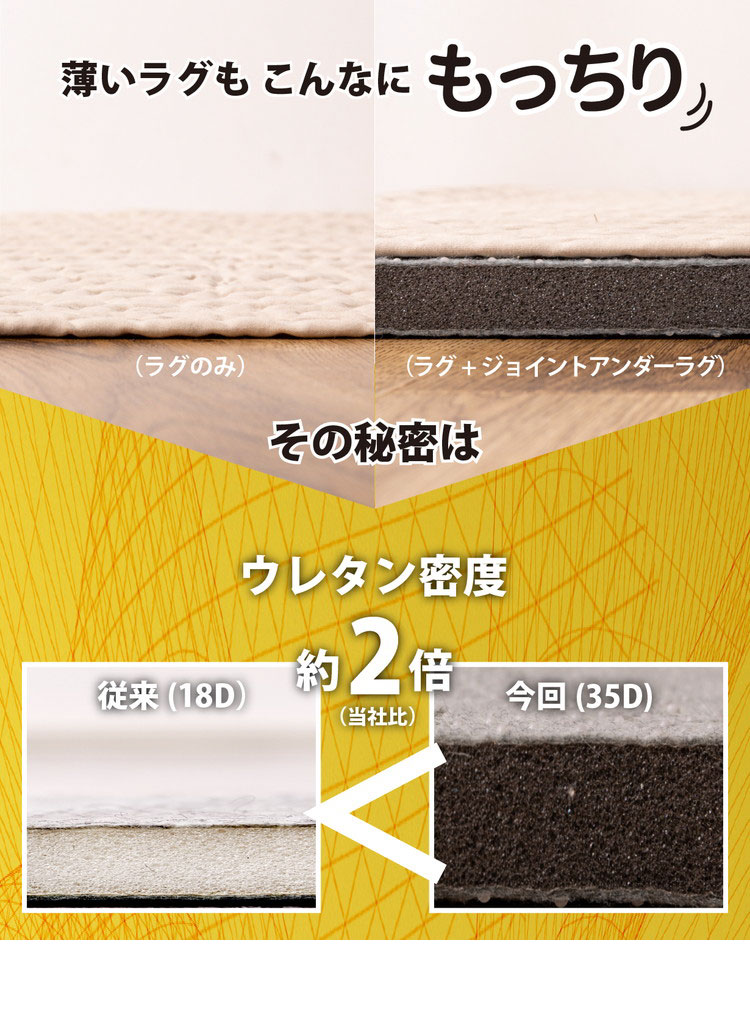 9枚セット ジョイントアンダーラグ 下敷き専用 防音 両面滑り止め ズレ防止 カットOK ジョイント式 約180cm×180cm 約2畳 アツマシ 厚み増し太郎 ふかふか 高密度 低反発 ウレタン【送料無料】