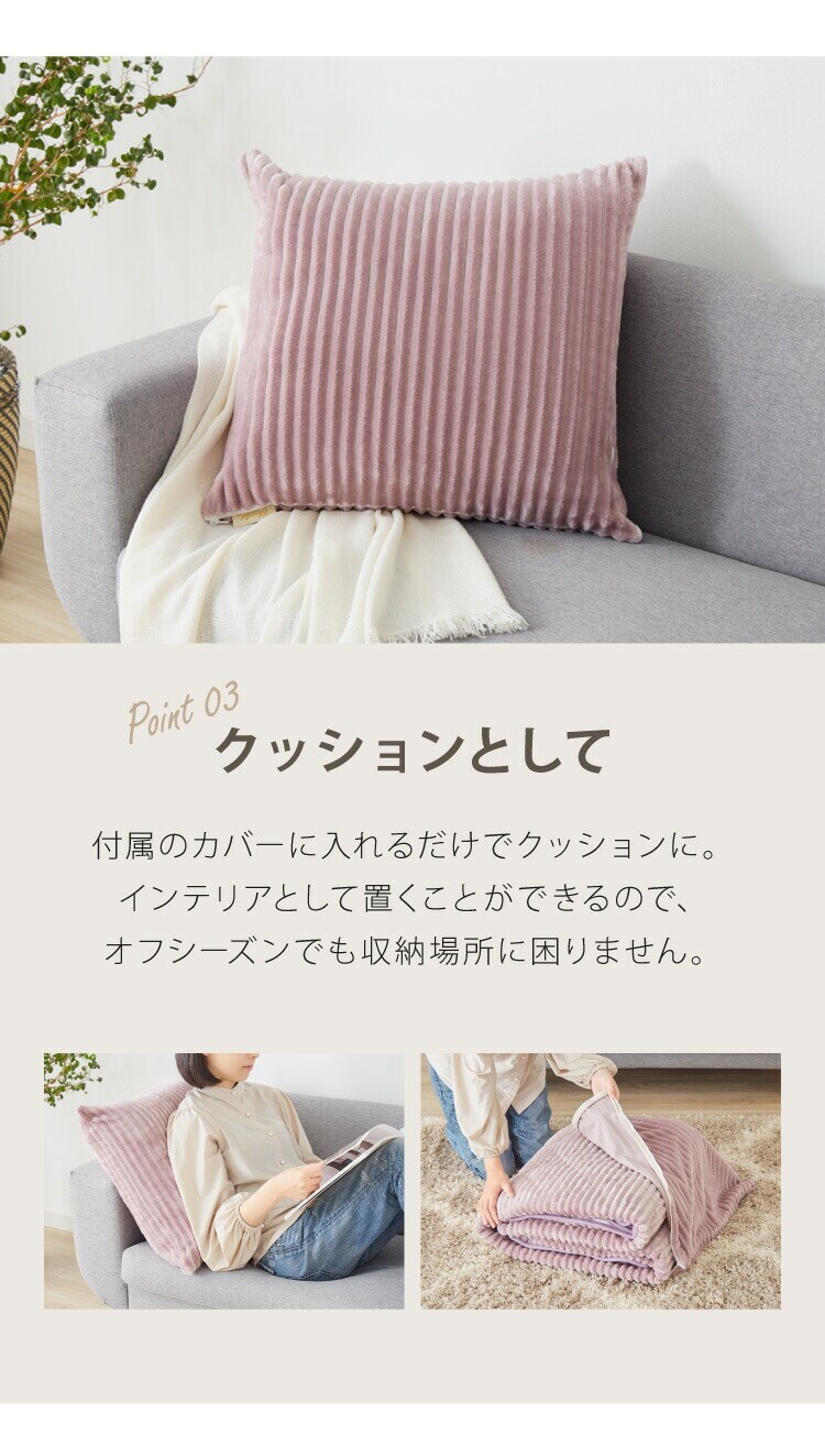 広げてこたつ掛け布団に、ファスナーをしめれば寝袋に、専用の収納袋に入れてクッションに。