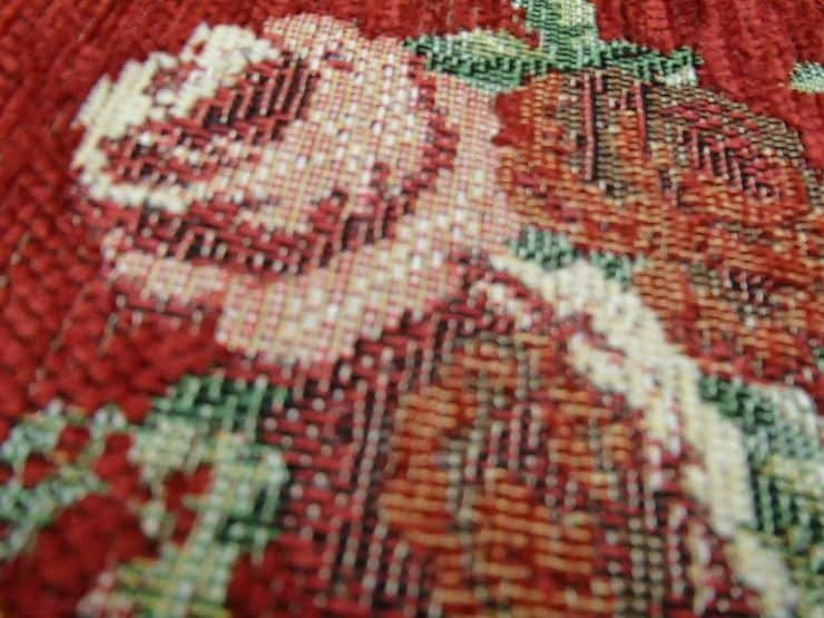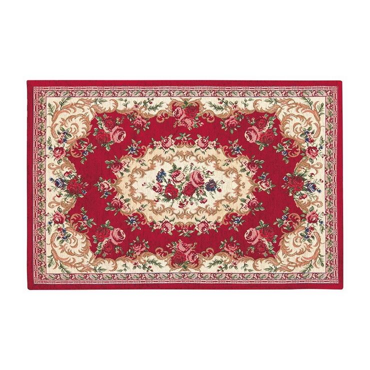 ちょっぴりゴージャスで刺繍のような柄が特徴のゴブラン織のマットです。ゴージャス感のある花柄デザインでインテリアのセンスアップにどうぞ。裏面は、滑りにくい加工付きです。 サイズ:約50×80cm カラー:RE 組成:表面:アクリル50%・ポリエステル45%・綿4%・レーヨン1%
