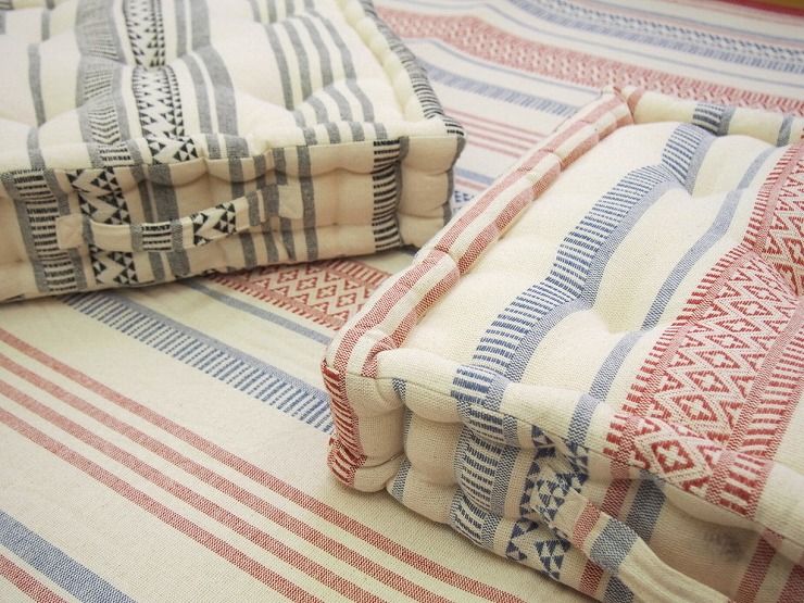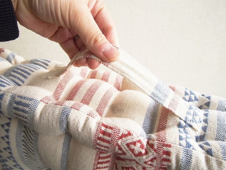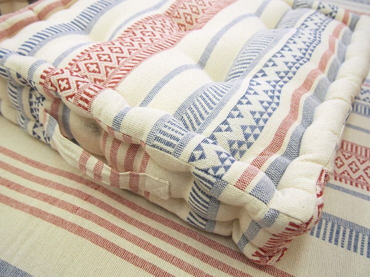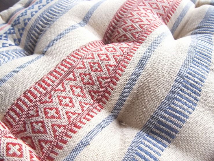 他の原産地の綿と比べ、ふんわりとした柔らかさがあるインド綿で作られたクッション。