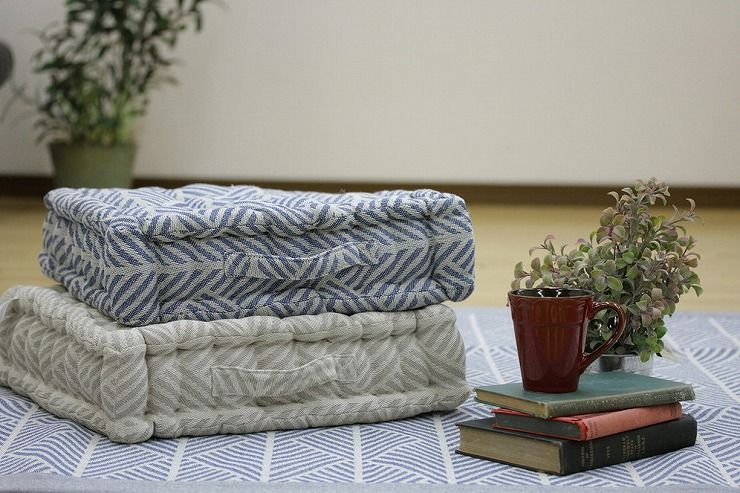 他の原産地の綿と比べ、ふんわりとした柔らかさがあるインド綿で作られたクッション。
